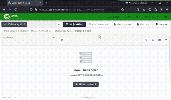 Tip: Zobrazte si Úkoly ⇒ Všechny moje a vyberte si Digitální firma X ⇒ Seminář 01 ⇒ Účetní doklad