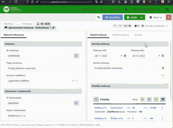 - Název dodavatele ze smlouvy se automaticky vyplňuje k položce smlouvy, pokud je zadaný