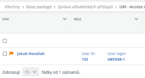 Že se podařilo studenty zapsat lze zkontrolovat v objektu Base package ⇒ Správa uživatelských přístupů ⇒ UM - Access request.