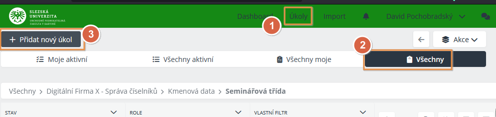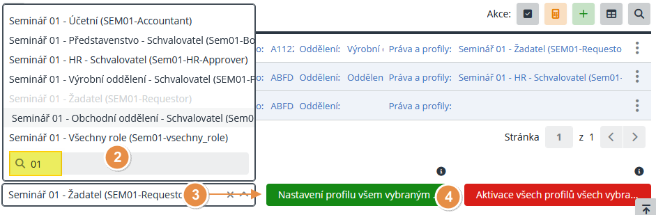 Seminářová třída - účastníci - zapsání profilů i oprávnění