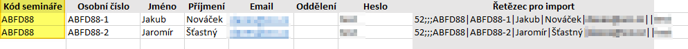 Data pro seminářovou třídu se kopírují z Excelu ze sloupce Řetězec pro import (H).