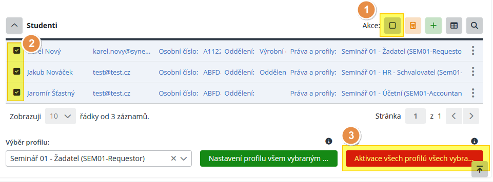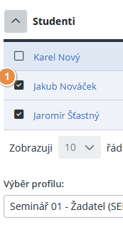 - Zaškrtnout všechny studenty, jejichž profily chcete aktivovat.