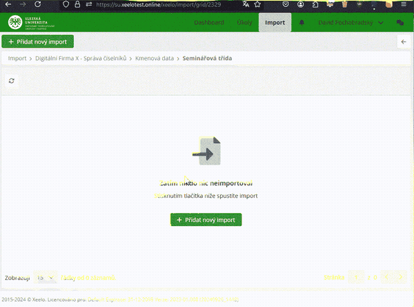 Připravte si Excel pro import. Zadejte hlavně správný kód seminářové třídy, kterou jste již vytvořili.