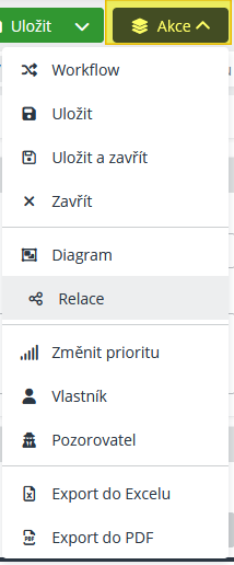 Relace Zobrazí související Úkoly, například pro Smlouvu zobrazí dodavatele a pro dodavatele všechny ostatní smlouvy, které jsou uzavřeny s tímto dodavatelem