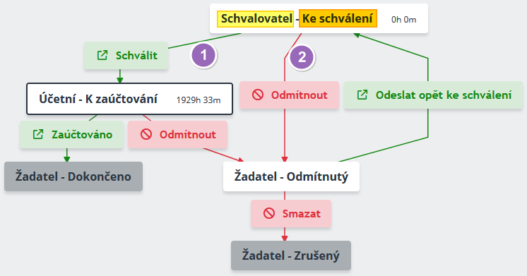 1. Průběžné stavy definují kroky, které musí být v procesu splněny. Proces je zobrazován jako aktivní, tedy nedokončený.