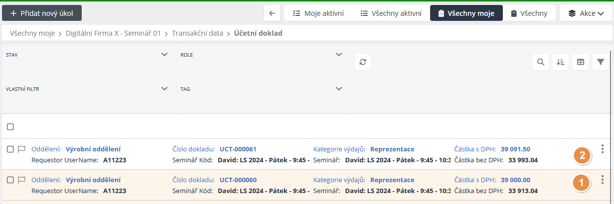 Role: Žadatel Role: Schvalovatel Role: Účetní Role: Vlastník procesu