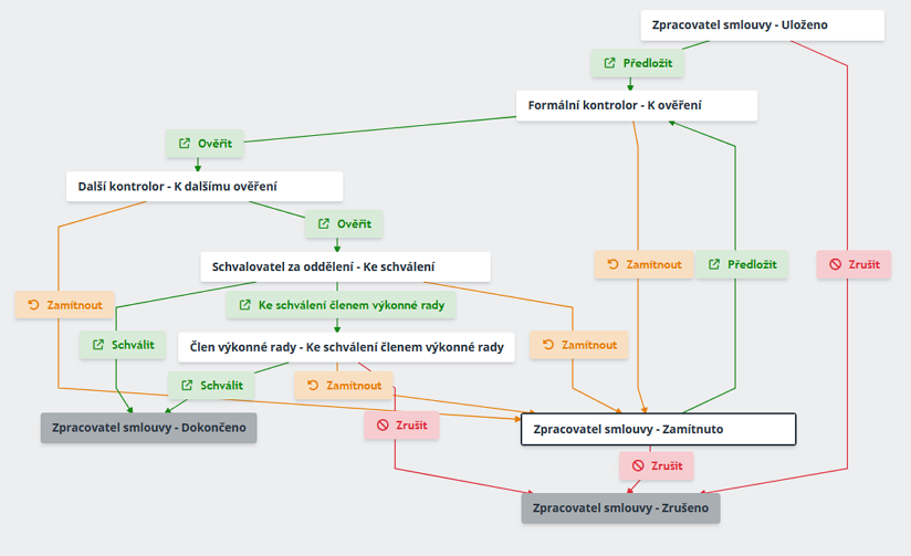 Schvalovatel za oddělení se vyjadřuje ke smlouvám, které patří konkrétnímu smluvnímu oddělení (pole Smluvní oddělení na objektu Smlouva). Schvalovatelů za oddělení může být více, stačí schválení jednoho odpovědného pracovníka za oddělení, aby smlouva postoupila dál.